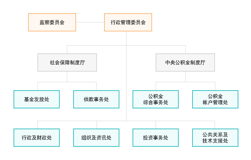 2017年7月18日生效的《社会保障基金的组织及运作》增设一名副主席和一厅四处(包括中央公积金制度厅、公积金综合事务处、公积金帐户管理处、投资事务处、公共关系及技术支援处),以有效落实施政目标及履行新增职能。