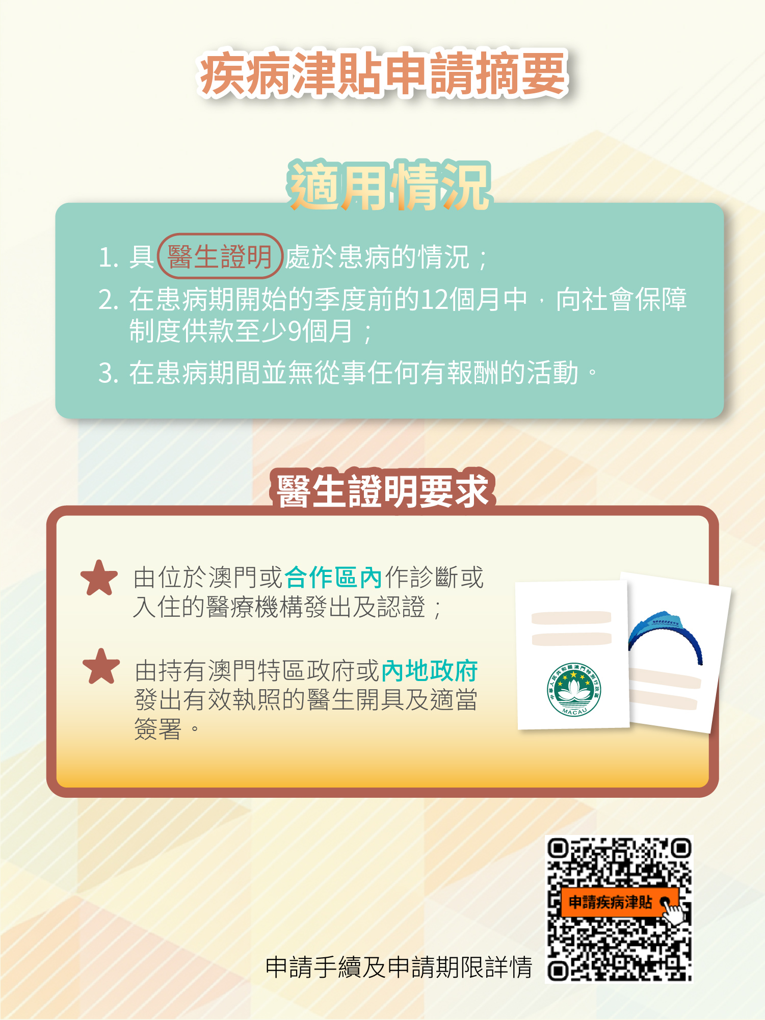 同時,將申請社會保障制度疾病津貼所需醫生證明文件的認受範圍擴展至合作區。